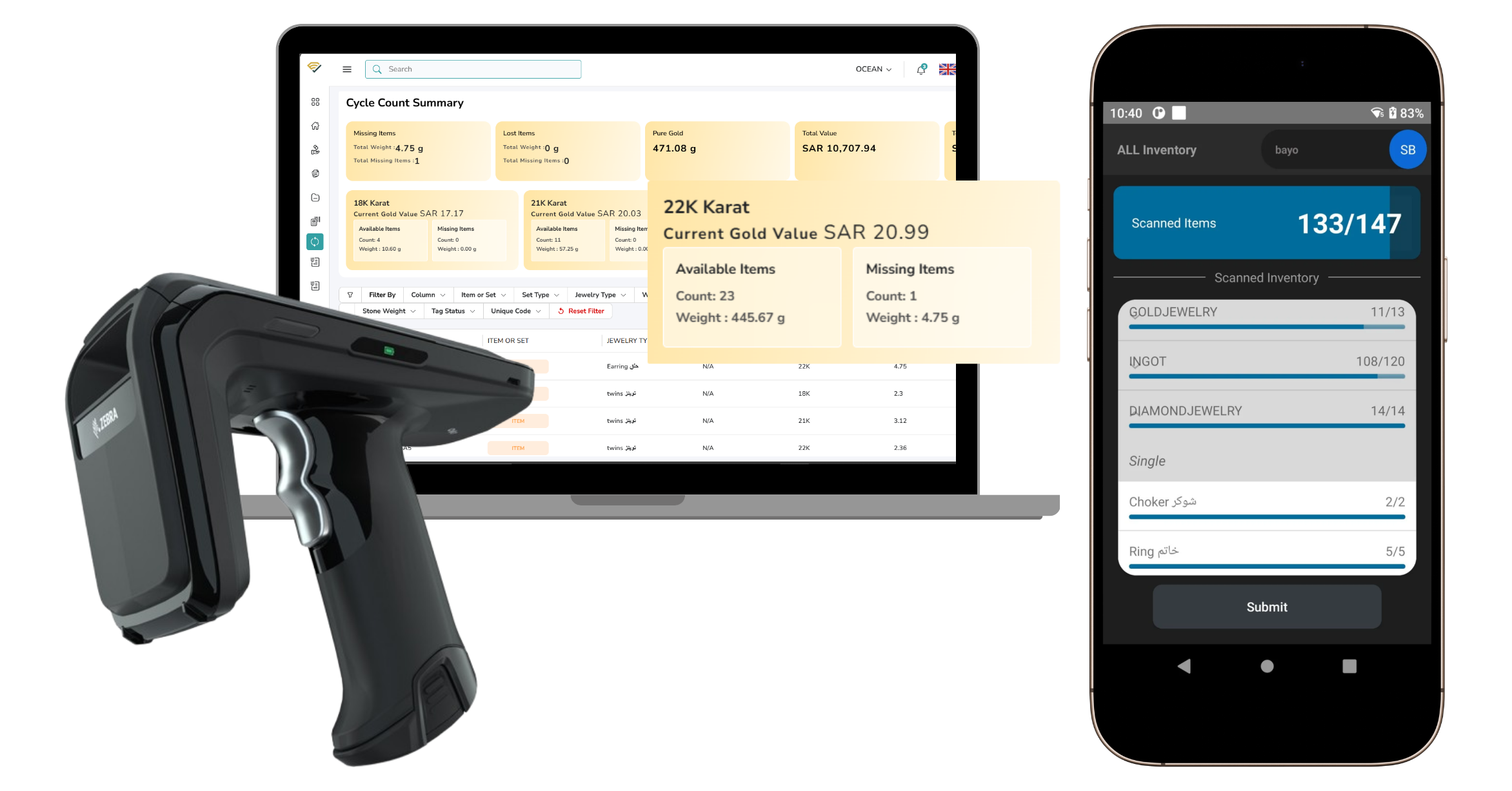 A Complete Suite of RAIN RFID-Enabled Software and Hardware Tools to Safeguard Your Precious Inventory. Manage Every Piece with Confidence, Prevent Loss, and Achieve Total Visibility Over Your Gold and Jewelry Collection